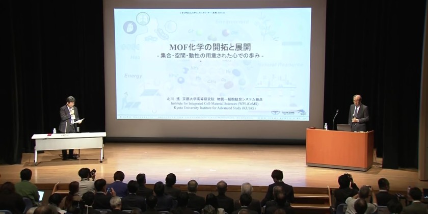 Kitagawa gave a lecture in Tokyo on Wednesday. It was organized by the Chemical Society of Japan, with about 260 researchers and others in attendance. Kitagawa won the prize for creating molecular constructions called metal-organic frameworks, or MOFs.