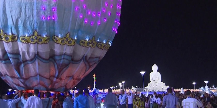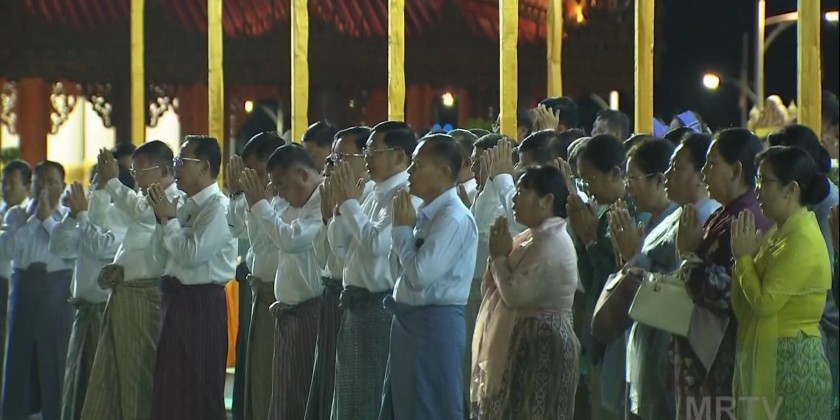 Finally, the Acting President and SSPC Chairman and his wife, along with other ceremony attendees, joined the monks and lay pilgrims who had come for the Maravijaya Buddha Image Tazaungdaing Festival light offering ceremony to watch the launching of large night balloons and Sein-Na-Pan hot-air balloons.