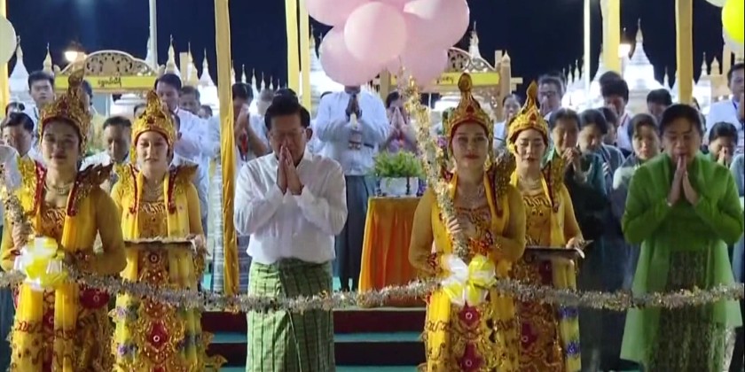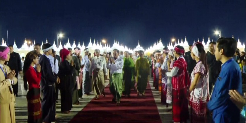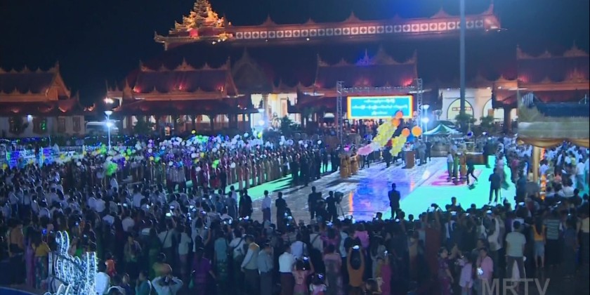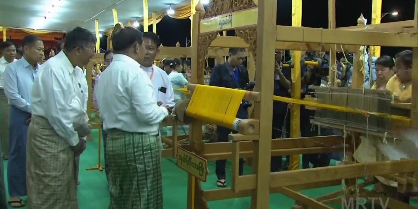 As the weaving groups started their work, artists from the Ministry of Information's Myanmar Radio and Television, cultural troupes from the Department of Fine Arts under the Ministry of Religious Affairs and Culture, and artists from the Myawady Music Band under the direction of the Public Relations and Psychological Operations Directorate performed the song "Myaing Myaing Saing Saing La Tazaungdaing".