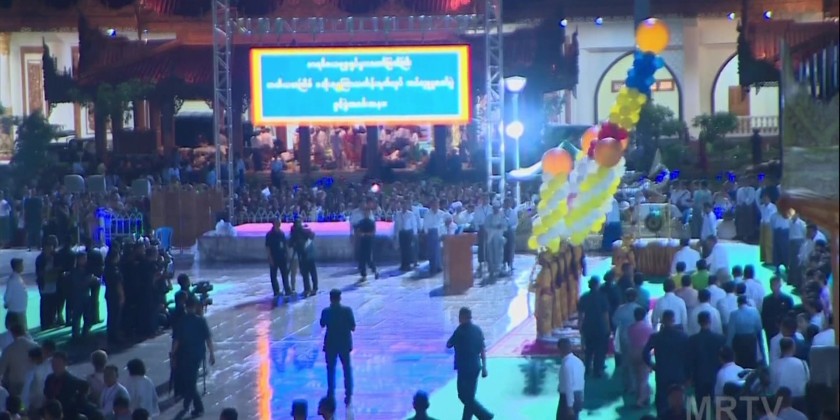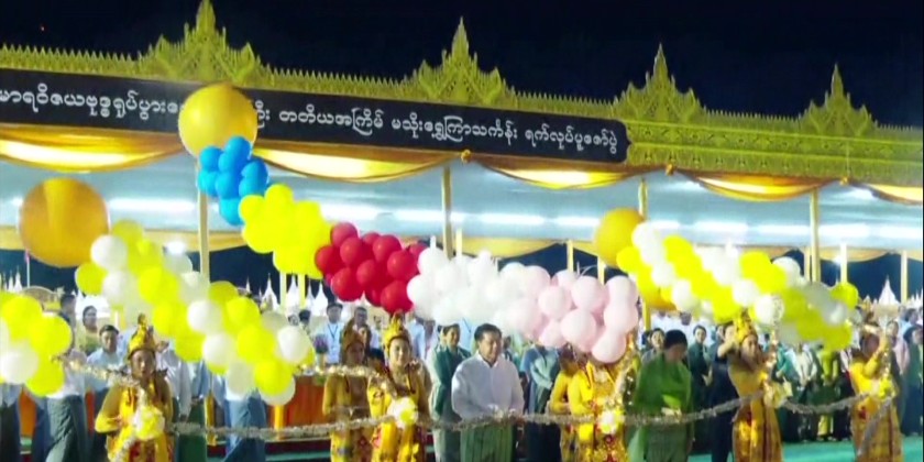 They were warmly welcomed by officials, ethnic performers from Myanmar Radio and Television, cultural troupes from the Department of Fine Arts under the Ministry of Religious Affairs and Culture. Subsequently, the ceremony was opened by reciting "Namo Tassa" three times and paying homage to the Buddha.