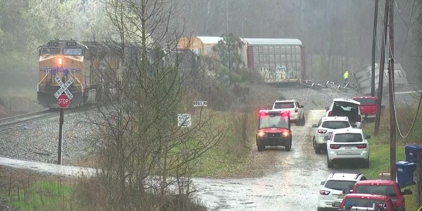 A Norfolk Southern train derailed in Alabama on Thursday, but company and local officials said there was no threat to the public. The derailment in Calhoun County, Alabama involved about 37 train cars, though none were carrying hazardous materials according to a spokesman for Norfolk Southern.