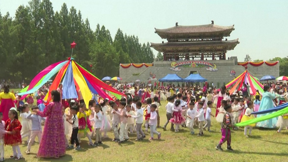 Children took part in amusement games and perform at the Taesongsan pleasure park in the North Korean capital, Pyongyang, as part of the International Children's Day celebrations on 1 June. North Korea, China and other countries sharing socialist values have marked June 1 as International Children's Day, instead of May 5. North Korea is a signatory to the U.N. Convention on the Rights of the Child.