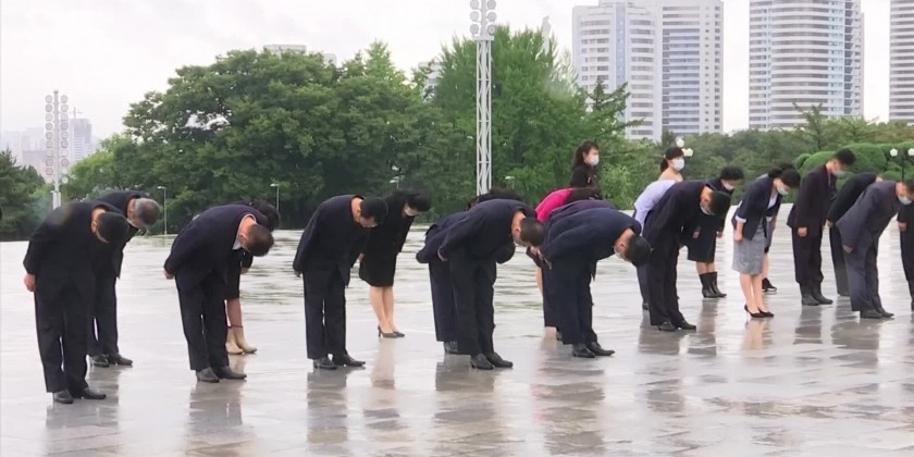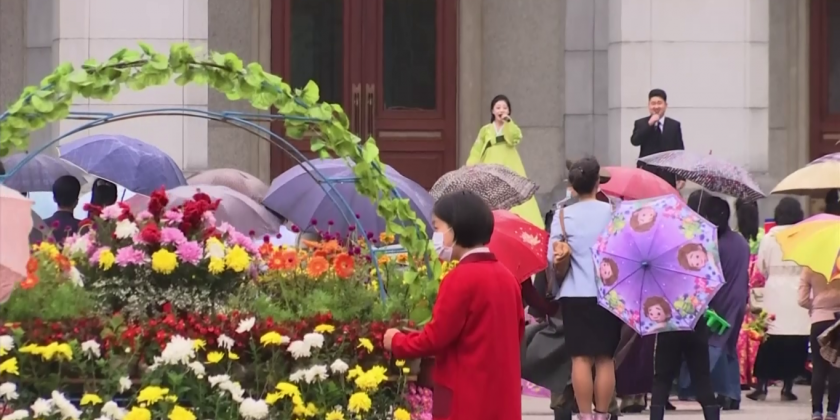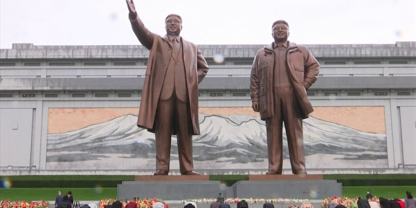 The capital city Pyongyang was decorated with flags and placards with the Workers' Party emblem of a hammer, sickle, and brush. citizens went through the routine of showing respect to the country's former leaders Kim Il Sung and Kim Jong Il, which is a requirement on all major holidays and anniversaries.