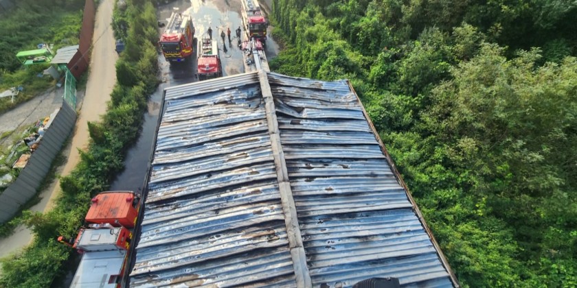 South Korean warehouse caught fire Sunday after a trash balloon sent from North Korea fell on the roof. Experts also said the fire might occur when a detonator for separating trash from the balloon explodes. No human casualties occurred because the warehouse was empty at the time.