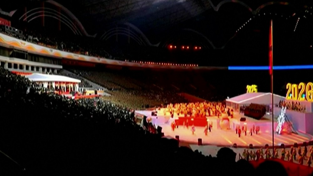 North Korean leader Kim Jong Un hailed the devotion of his troops and the "patriotic spirit" of his people in a New Year's address during a lavish celebration to ring in 2026 at the May Day Stadium in Pyongyang.