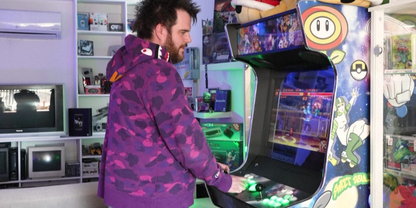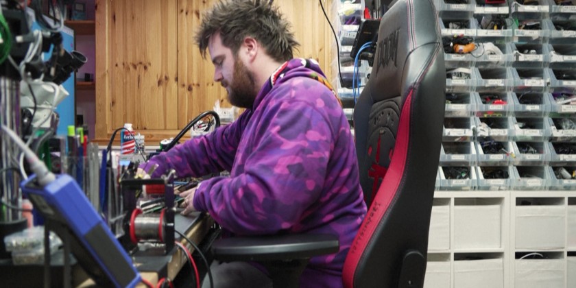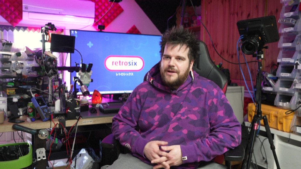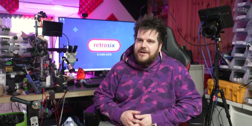 Luke Malpass, owner of the video game repair business RetroSix, restores vintage gaming consoles from his home workshop, where shelves are stacked with parts for Game Boys, Sega Megadrives, and early Nintendo systems.