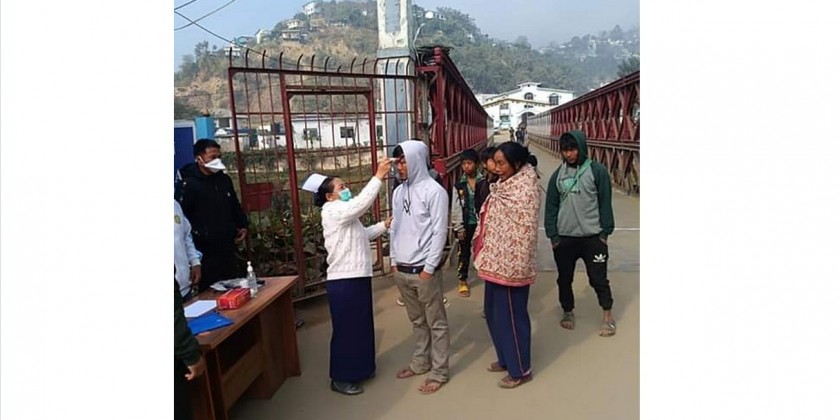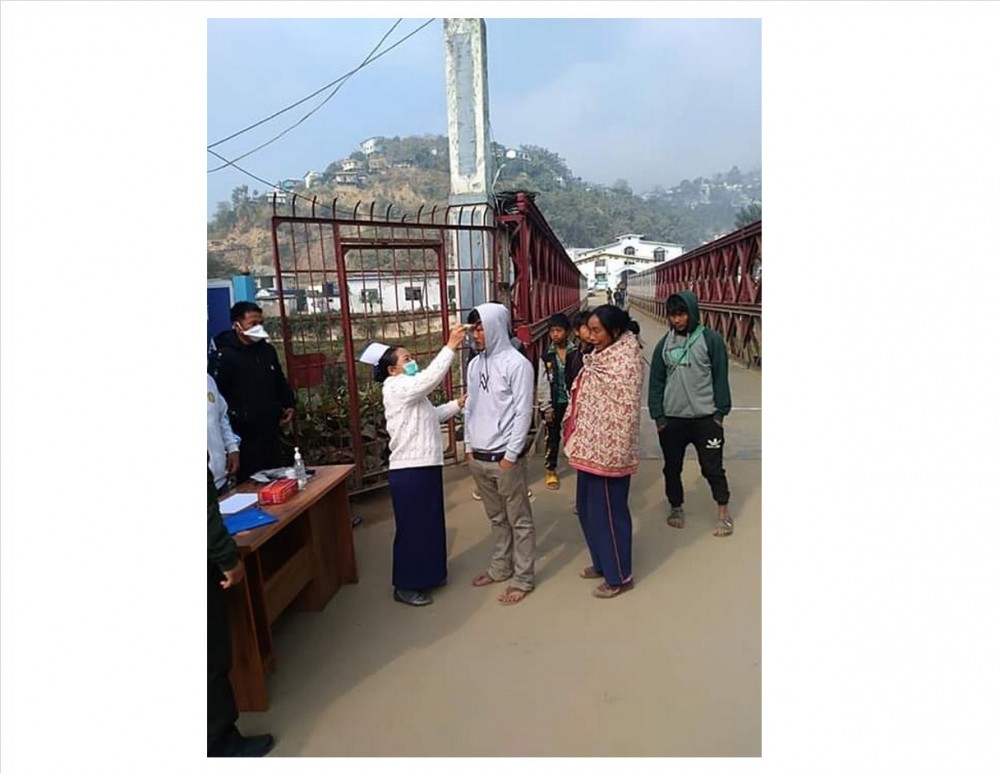 A team led by a medical in-charge of Rikhawdar Station Hospital has been conducting monitoring and surveillance to the travelers passing through the border bridge. They raised awareness on corona virus, its symptom and preventive measures. There was no found suspected case and the screening and surveillance will be continued daily, it is learnt.