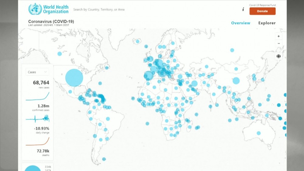 More than 72,700 people had died of COVID-19 globally as the number of infections surged to 1.28 million on Tuesday, according to the latest figures showed by the situation dashboard of the World Health Organization (WHO).