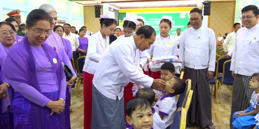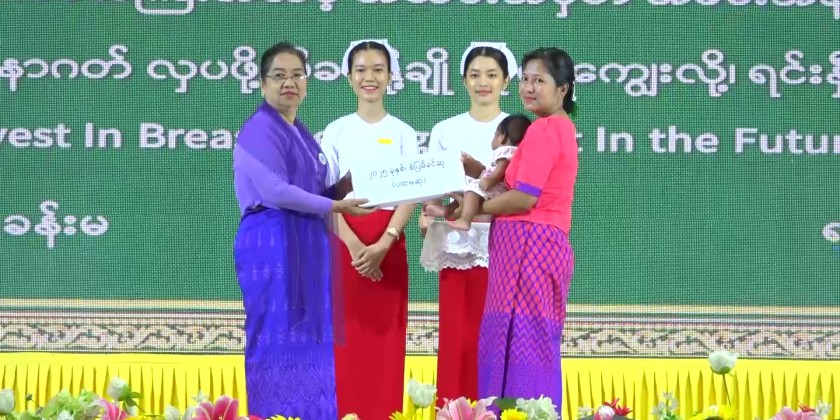 In his speech, Chief Minister U Myat Kyaw stated that adequate nutrition is an important pillar for the development of every individual, every family, and the nation as a whole. He stressed the need to strengthen and accelerate nutrition development activities in line with this year’s theme “For a Bright Future for Children, Let’s Invest in Breastfeeding” beginning with breastfeeding and continuing with age-appropriate nutritional care. He urged everyone to work together and invest collectively in these efforts.