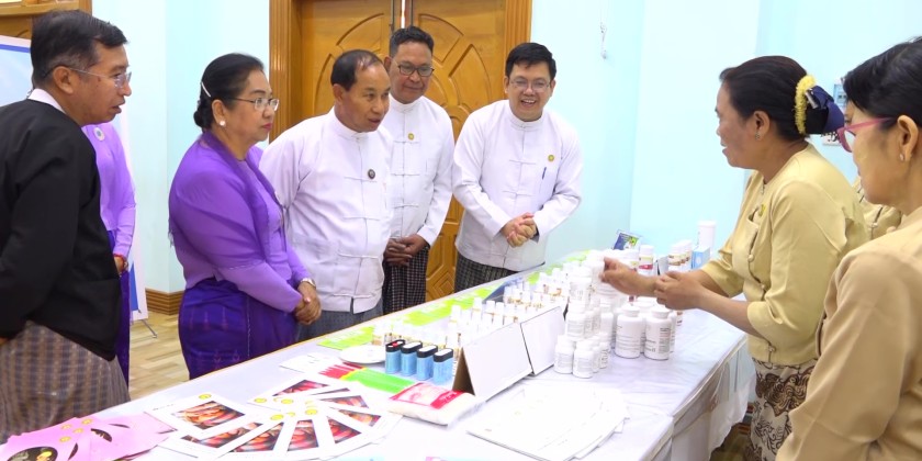 After that, the Chief Minister and officials viewed photo displays documenting the activities of Nutrition Development Weeks, as well as exhibits of deworming medicines, micronutrient powders, and Phyuramin BC tablets arranged in the hall.