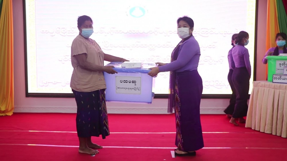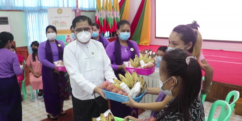 Afterward, the chief minister and wife, chief justice of state high court, state ministers, state advocate general, chairman of state supervisory committee and members viewed the preparations for the competition and the chief minister provided one million Kyats to the chairperson of the state Maternal and Child Welfare Association Daw Lwin Lwin Maw and assisted nutritious foods for the expectant and breast milk feeding mothers, toys for the children and the cash.