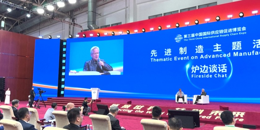Nvidia CEO Jensen Huang attended an event with Alibaba's Cloud founder Wang Jian in Beijing on the sidelines of the China International Supply Chain Expo.
