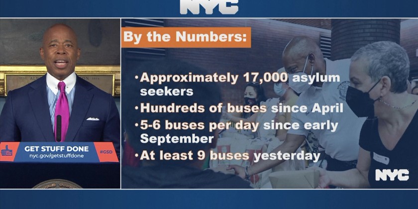 He says by the end of its fiscal year, the city expected to spend $1 billion helping the new arrivals. Adams called for state and federal financial aid, federal legislation that would allow asylum seekers to legally work sooner, and federal plans to fairly distribute asylum seekers throughout the country.
