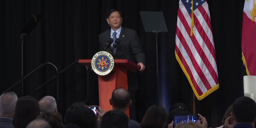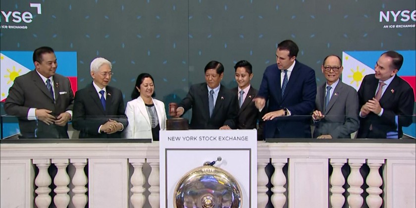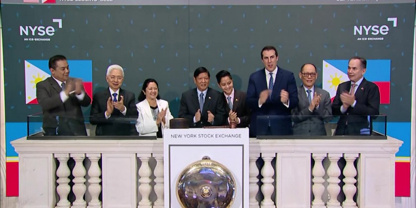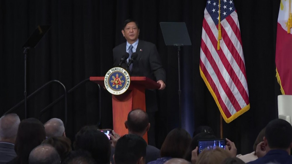Philippine president Ferdinand Marcos, Jr. addressed investors at the New York Stock Exchange Monday. Marcos praised the economic, investment and other business opportunities in his country before ringing the closing bell at the stock exchange.