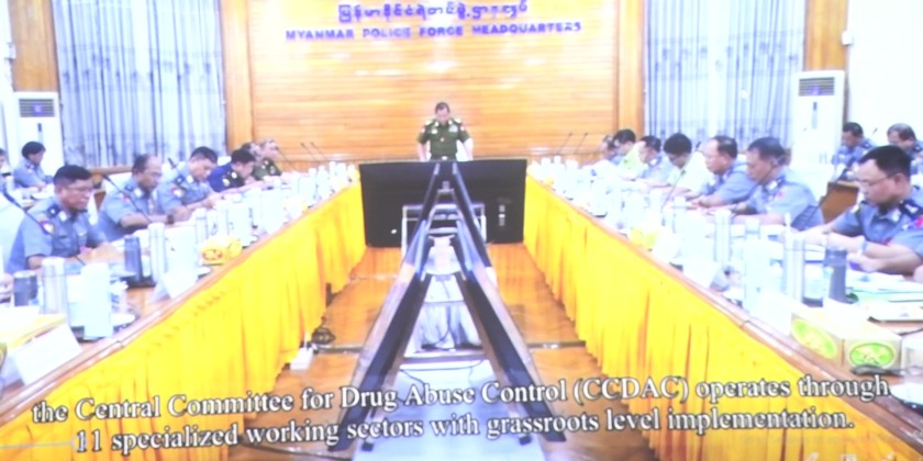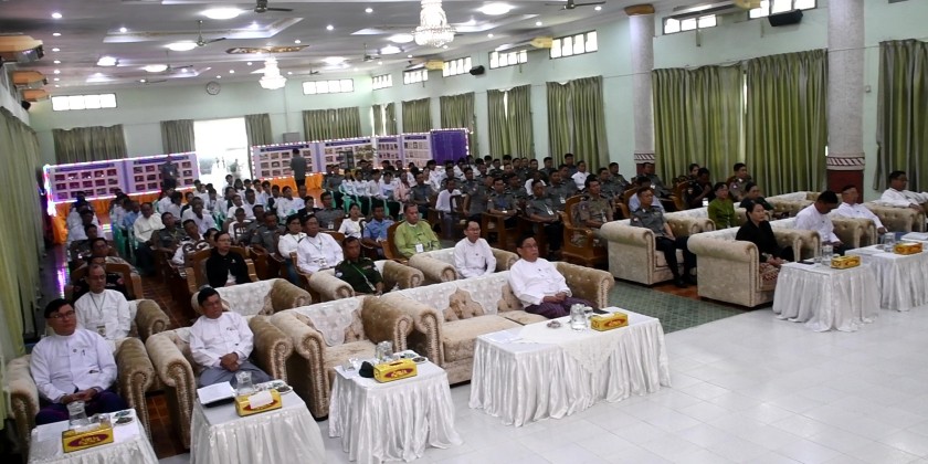 During the ceremony, the Chief Minister, the Minister of Security and Border Affairs, and the Region Police Chief Police Colonel Myint Tun presented certificates of honor and awards to those who made outstanding achievements in drug seizure efforts in honor of the 38th observance of the day.