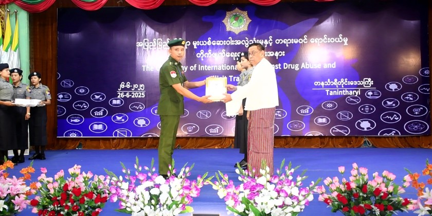 The ceremony commemorating the International Day Against Drug Abuse and Illicit Trafficking was held at the City Hall in Dawei, Tanintharyi Region in the morning on June 26.