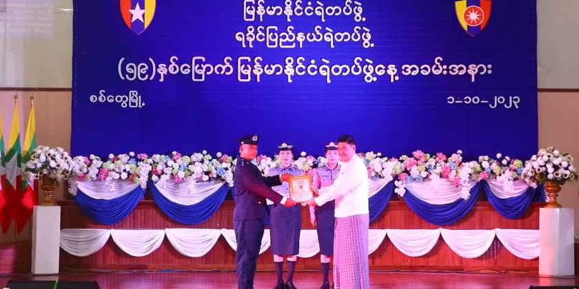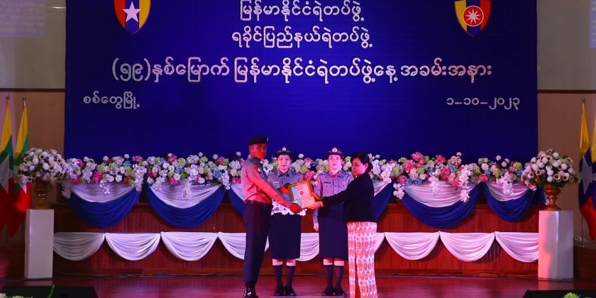 In his speech, the Chief Minister urged the police members to equip themselves with patriotism, capability, and modernity while striving to become a better image of the Myanmar Police Force. After reading out the message sent by the Chief of Myanmar Police Force, honorary awards were presented to the outstanding members.