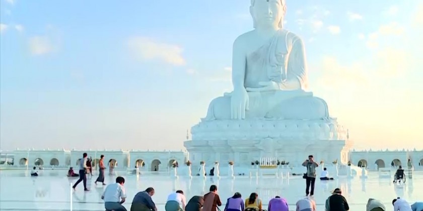 Later the day, they visited the Maravijaya Buddha Image, the world's highest sitting marble Buddha image in the Buddha Park of Dekkhinathiri Township. It’s built with the aims; to show the flourishing of Theravada Buddhism in Myanmar, to have Myanmar as a focal point of Theravada Buddhism, to ensure prosperity of the State and to contribute to peace and stability of the world.