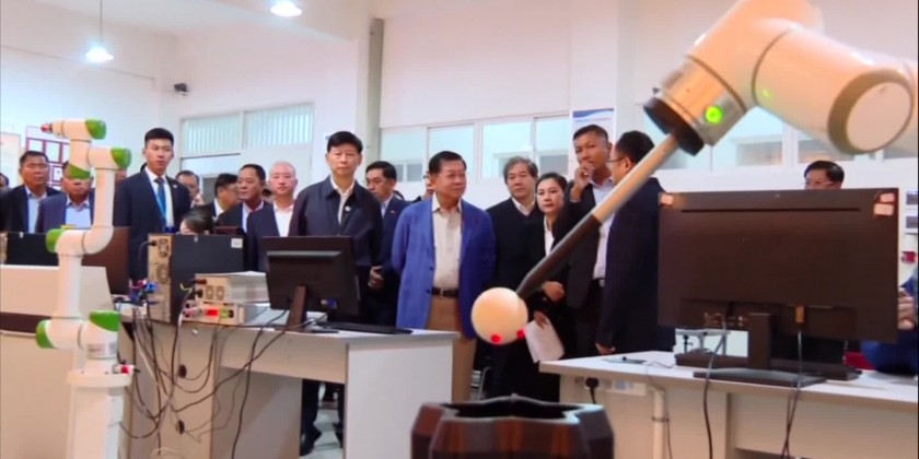 At Kunming University of Science and Technology, the Prime Minister and party were warmly welcomed by Party Secretary Mr. Teng Jiahua and officials. They then watched a video on the university's activities at the AI Technology Laboratory, followed by a practical AI demonstration by Pro-Rector Mr. Liu Yanwen.