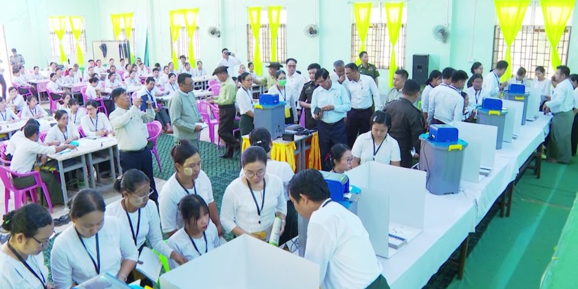 The training program is scheduled to run for two days, from July 14 to 15, and includes practical sessions on various topics such as the structure and setup of the Myanmar Electronic Voting Machine, inspection of the machines, preparation and testing of the voting machines at polling stations before election day, mock voting on election day, procedures for replacing backup machines, vote counting, handling of emergency situations, and explanation of necessary forms and documents. Trainees will receive hands-on practice in handling these procedures.