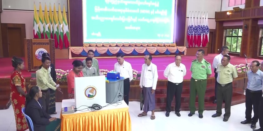 Subsequently, Rakhine State Chief Minister U Htein Lin attended an event organized by the Rakhine State Sub- Election Commission at the Khaing Thazin Hall in Sittwe, where the public was demonstrated and given a practical voting demonstration on the Myanmar Electronic Voting Machine (MEVM).