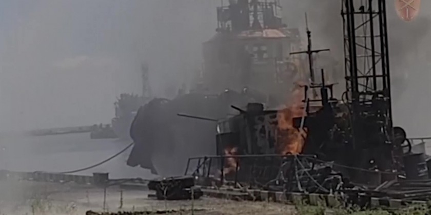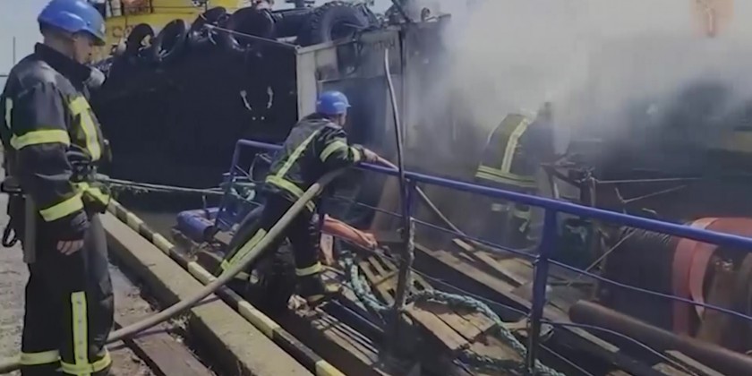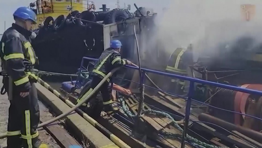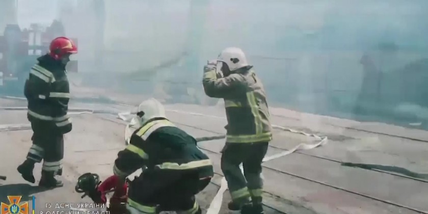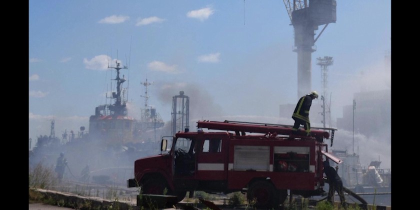 Two Russian cruise missiles hit the port's infrastructure and Ukrainian air defenses brought down two others, the Ukrainian military’s Southern Command said.