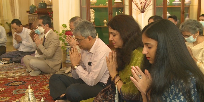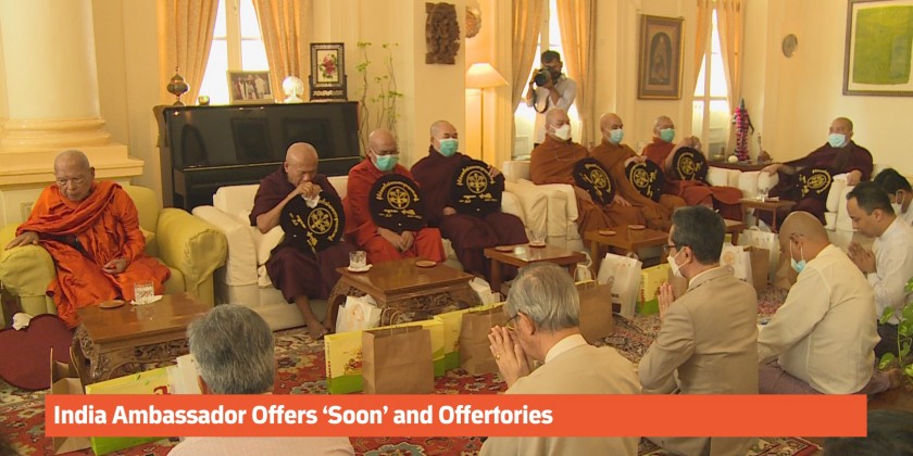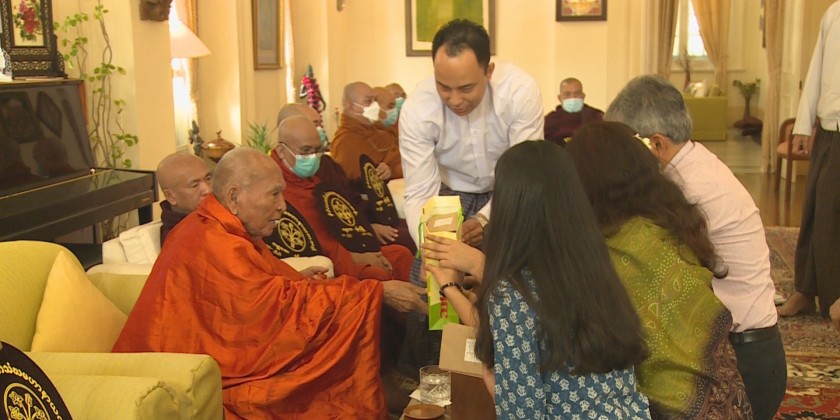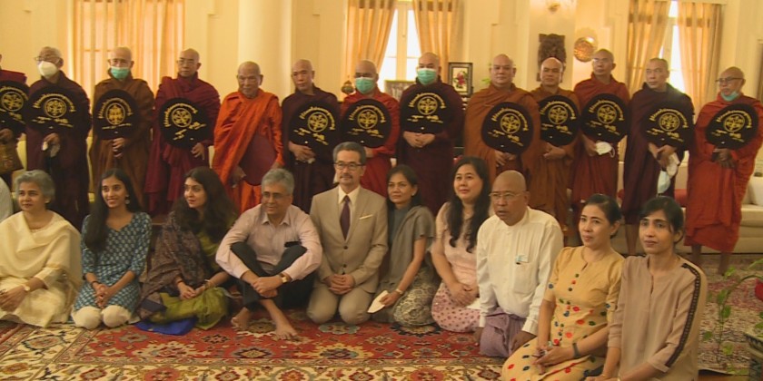 India ambassador to Myanmar, H.E Mr. Saurabh Kumar said “The soon ceremony is deeply religious ceremony. For me, it is it will be very fulfilling experience to have monks from your highest religious body, the Sangha Maha Nayaka Committee and honoring us by visiting India House and giving us the opportunities to offer the Soon ceremony. So, we feel very honor and we feel very gratify and for me personally, it is very fulfilling and satisfying to offer midday meal offering to the monks. Buddhism is a religion which unites both India and Myanmar and in that sense also it is personally very gratifying and satisfying for me.