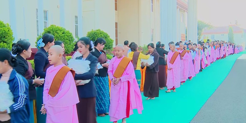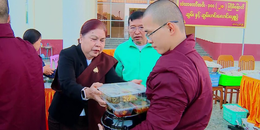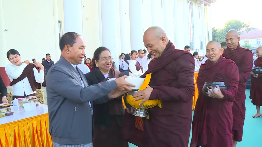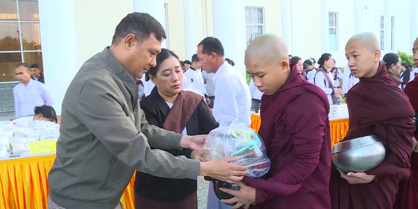The Sagaing Region Government organized an alms offering of alms-food to the Sangha from three major Pariyatti monasteries in Monywa Township, and an offering of dry provisions to senior and junior nuns from ten nunneries in the morning of December 31 within the compound of the Region Government Office.