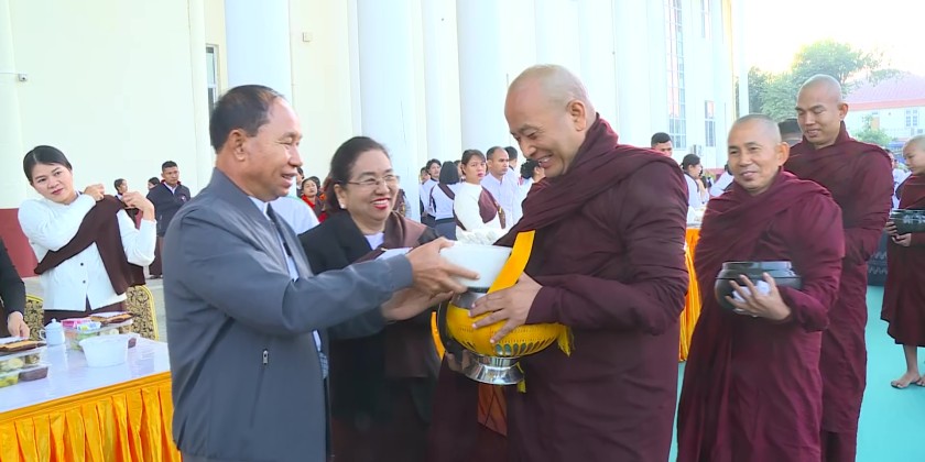 Following this, the Chief Minister and his wife, officials, and donors offered alms-food, fruits,  desserts, and cash donations to the members of Sangha, and presented rice, cooking oil, and other donated items to the senior and junior nuns.