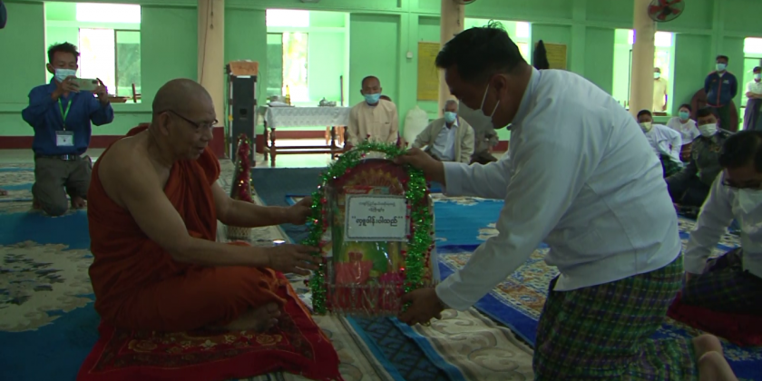 Kachin State Chief Minister U Khet Hteik Nan, together with the officials, on 10th December, made donations to the religious institutions in Bamaw. The Chief Minister donated offertories and 200,000 kyats each to MyoLayHtat Pariyatti SarThinTaik, Thiri Mingala Kan Oo Pariyatti SarThinTaik and Thein Daw Gyi Pariyatti Sar Thin Taik .