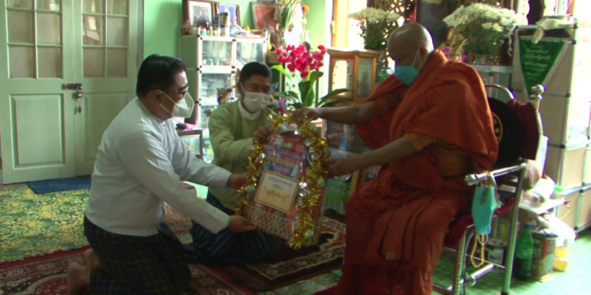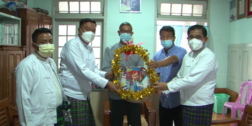 The Chief Minister also visited to the Office of the Catholic Bipshops Association and Bamaw District Baptist Association and presented Christmas gifts and 200,000 kyats each of cash donations. During his visits to the religious institutions, the Chief Minister discussed the COVID-19 vaccination to the members of the Sanghas and the local public.