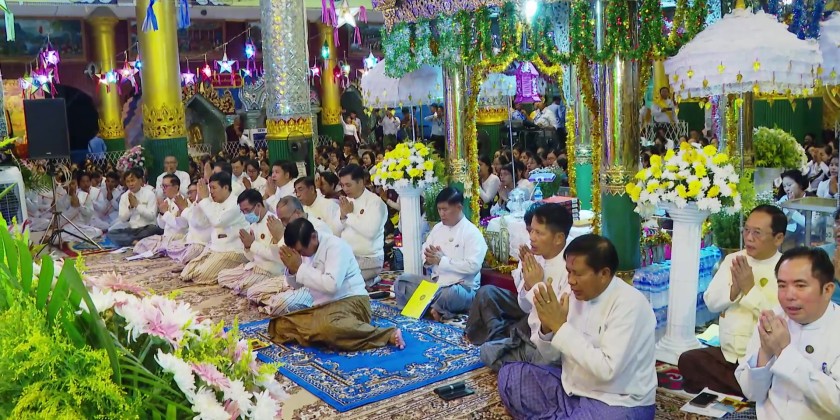 Following this, the Chief Minister, Region ministers, responsible officials and devotees, performed the chanting of religious verses, observing five precepts, reciting Pathana Dhamma discourses.