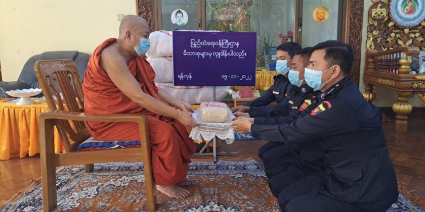 On November 15, for the monks residing in Zaygone monastery in Pyinmana Township of Nay Pyi Taw Council Are, Thirithuzana monastery in Hpa-An Township of Kayin State, Katoe Mahayin Pariyatti Sarthintaik  monastery in Mawlamyaing Township of Mon State, Masoeyein monastery in Tamwe Township, Mahawizayarama  monastery in Mingalar Taung Nyunt Township, Thaddhamma Theidhi monastery in Hlangthaya (West) Township of Yangon Region, YanKone monastery in Kengtung Township of Shan State, the rice were offered and Withuddhayon Baranathi monastery in Pyay Township of Bago Region, AungMyay Yatana Pariyatti Sarthintaik  in Magwe Township of Magwe Region, Maha PyinNyeindarama monastery in ChanMyaTharZi Township, ThiriYatana Maggin monastery in PyiGyiTaGun Township of Mandalay Region, Pyi Kyaung Pariyatti Sarthintaik in Mawlamyaing Township of Mon State, YatanaTheingi Khayan Pariyatti Sarthintaik in Thingangyun Township of Yangon Region, Pan Oak monastery in Lashio Township of Shan State, were offered by the responsible officials, it’s reported.
