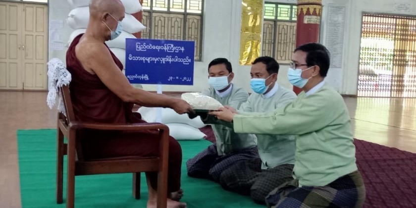 On August 23, for the monks residing in the Shwe Inn Yeiktha monastery in Tatkone Township, Nay Pyi Taw Council Area, Thiriyatana monastery in Myawady Township, Kayin State, Mayancho monastery in Aung Thitsar Town, KyaikHto Township, Mon State, Aung Myay Bodhi Dhamma Yeiktha Ahlotawpyae monastery, Tamwe Township in Yangon Region, Shwe Zarli Pariyatti Sarthintaik in Moe Meik Township, Shan State and Mahawithutayama-Taikthit Monastery in Nyaungdone Township, Ayeyarwady Region, the rice and foodstuff were offered by the responsible officials, it’s reported.