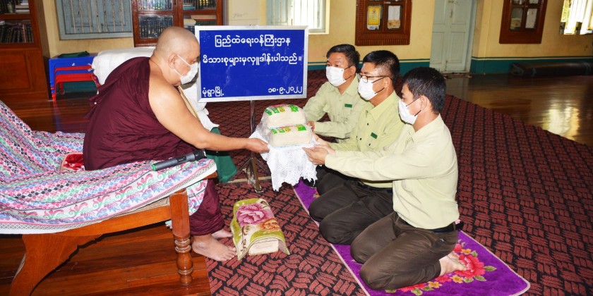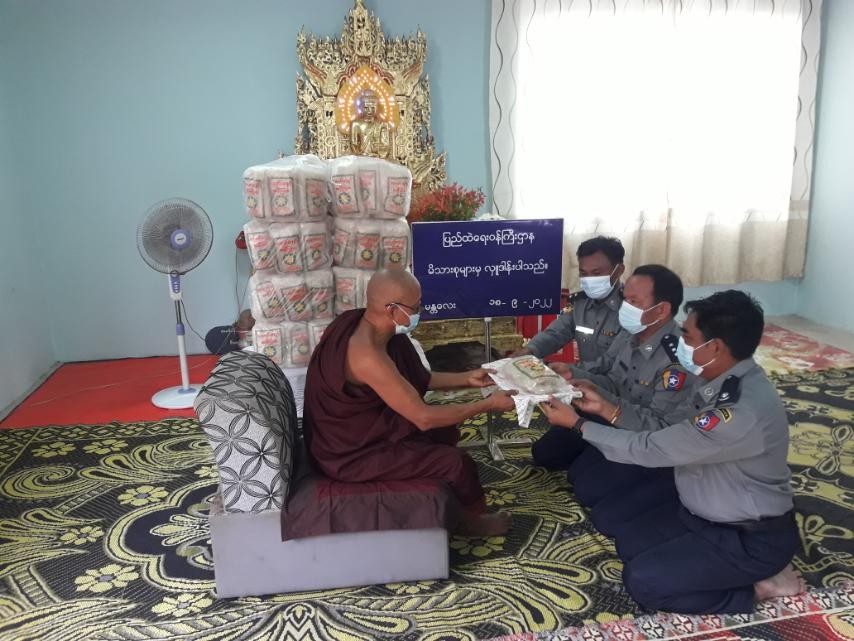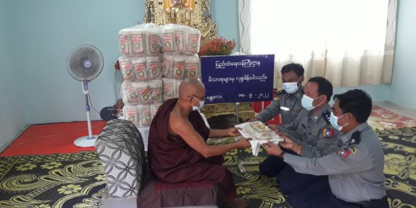 On September 18, for the monks residing in Yatanapon Tawya monastery in Lewe Township, Nay Pyi Taw Council Area, Otthathiri Pariyatti Sarthintaik in Bago Township and WiThuddhayon Varanathi  monastery in Pyay Township of Bago Region, Aung Parami Pariyatti Sarthintaik in Sittwe Township of Rakhine State, Kantha monastery in South Okkalapa Township,  Tipitaka Sein Shwe Phuu monastery and Yatana Man Aung monastery Mingalardon Township, Moe Gaung Pariyatti Sarthintaik in Yankin Township and KyunKaLay Pariyatti Sarthintaik and Athawka Thitagu monastery in Hlaingthaya (West) Township of Yangon Region, PitZawTaYon monastery in Monywa Township of Sagaing Region, TaungPyin Htilin monastery in Chamyathasi  Township and Yay Pan Monastery in Maha AungMyay Township of Mandalay Region and ShweLaYaung  Monastery in Lashio Township Shan State, the rice and rice vermicelli were offered by the responsible officials, it’s reported.