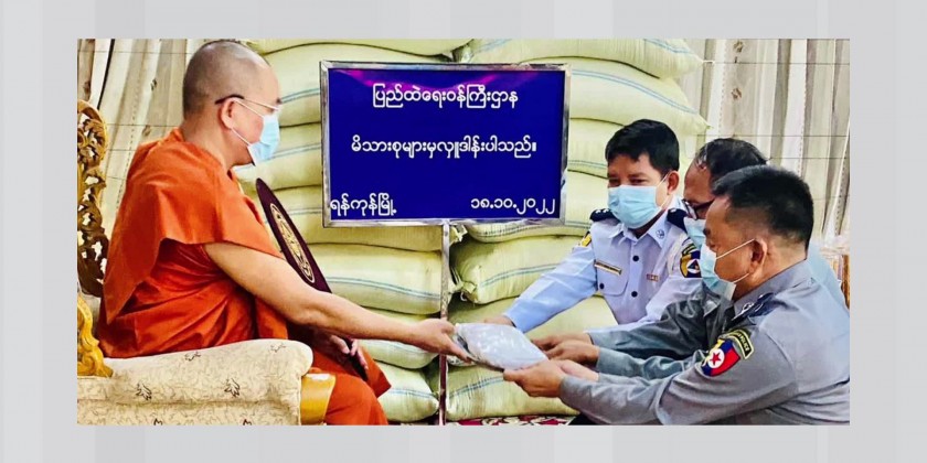On October 18, for the monks residing in Sein Yazar Sasanalankara Pariyatti Sarthintaik in Pubbathiri Township of Nay Pyi Taw Council, Myo Taw Oo monastery in Mawlamyaing Township of Mon State, Myoma Pariyatti Sarthintaik in Sittwe Township of Rakhine State, Pitaka Thonepon Nikal Pariyatti Sarthintaik in Dagon Myothit (South) Township, Ariyamaggin monastery in Tamwe Township, Kantha monastery in South Okkalapa Township, Thuseikta Lankara Pariyatti Sarthintaik in Thaketa Township, Mingalarthiri Pariyatti Sarthintaik in Insein Township of Yangon Region, the rice were offered and Sasana Yaungchi Pariyatti Sarthintaik in Monywa Township of Sagaing Region, Thitagu Buddha College in Pyay Township of Bago Region, HtanTawGyi monastery in Pakhokku Township, Yatana Theiddhi monastery in Magway Township of Magway Region, Madaya monastery in Aung Myay TharSan Township of Mandalay Region, Aung Myint Zayyon monastery in Taunggyi Township of Shan State, the rice vermicelli were offered by the responsible officials, it’s reported.