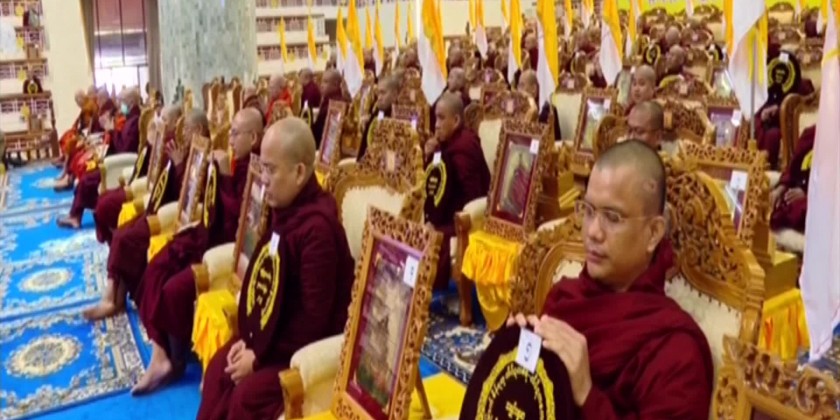 A ceremony to honour 152 members of the Sangha who passed the 75th Anniversary Diamond Jubilee Tipitakadhara Tipitakakovida selection examination organized by the Ministry of Religious Affairs and Culture was held in conjunction with the certificate presentation ceremony at MahaPasana Cave on Kaba Aye Hill in Yangon in the morning on May 23.