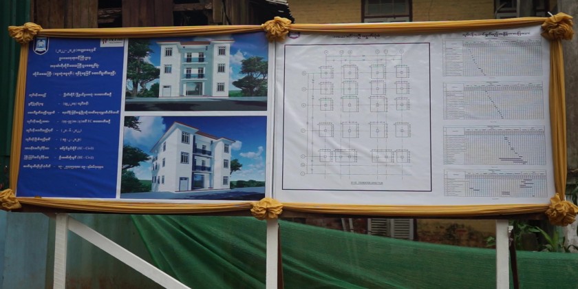 Construction of 44 x 59 ft wide four-storey new building will be undertaking by NaungYoe Myanmar Development Company Limited, and it is targeted to complete by February 2023.