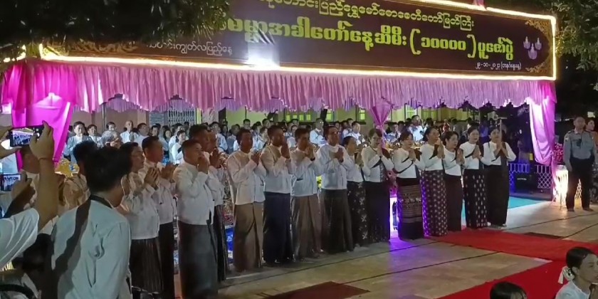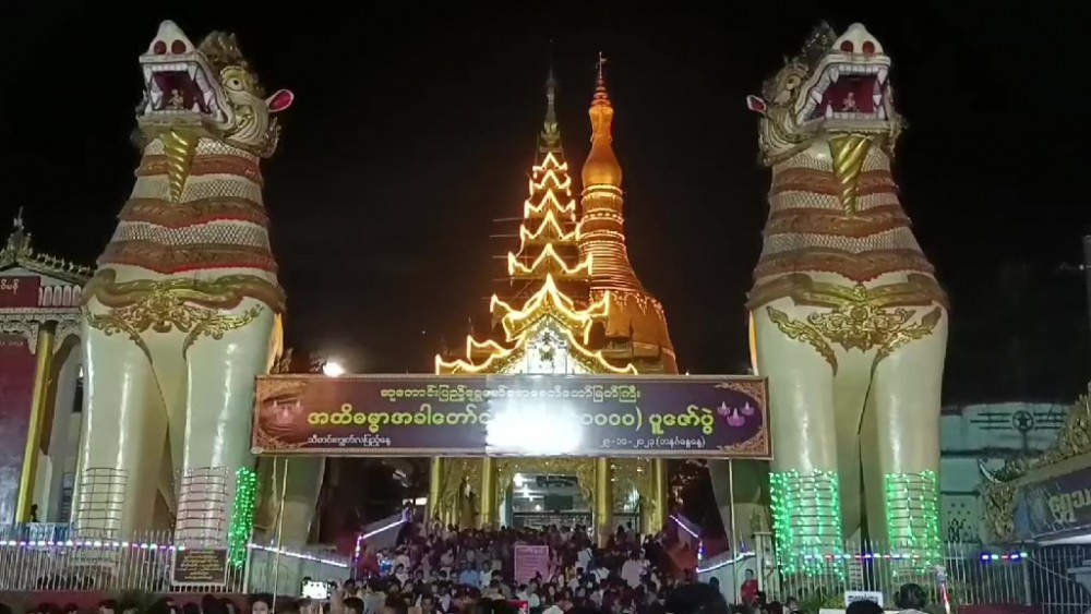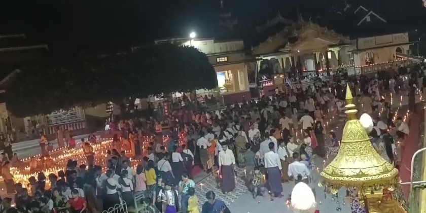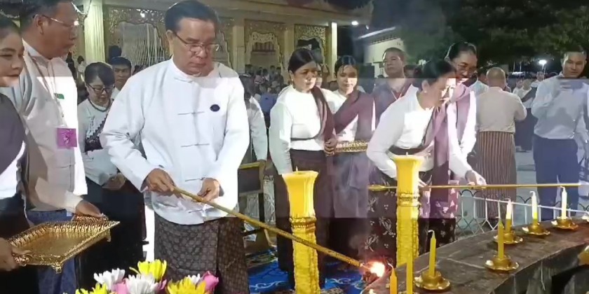 Bago Region Chief Minister U Myo Swe Win and many other officials participated in a ceremony to offer 10,000 oil lamps to the Lord Buddha at the Shwemawdaw Pagoda in Bago Township in the evening of the Thadingyut Full Moon Day.