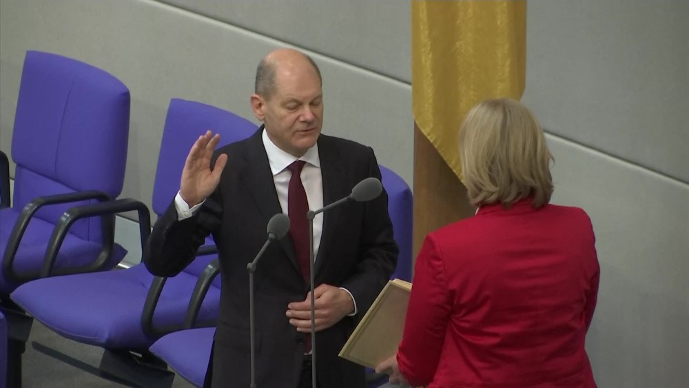 Scholz’s government takes office with high hopes of modernizing Germany and combating climate change but faces the immediate challenge of handling the country’s toughest phase yet of the coronavirus pandemic. Scholz was formally appointed by Germany's president, then returned to parliament to be sworn in. Lawmakers voted by 395-303 to elect Scholz as chancellor. His three-party coalition holds 416 seats in the 736-seat lower house of parliament.