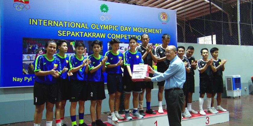 Sepak Takraw Competition was held at Wunna Theikdi Stadium in Nay Pyi Taw on Saturday to mark the International Olympic Day.