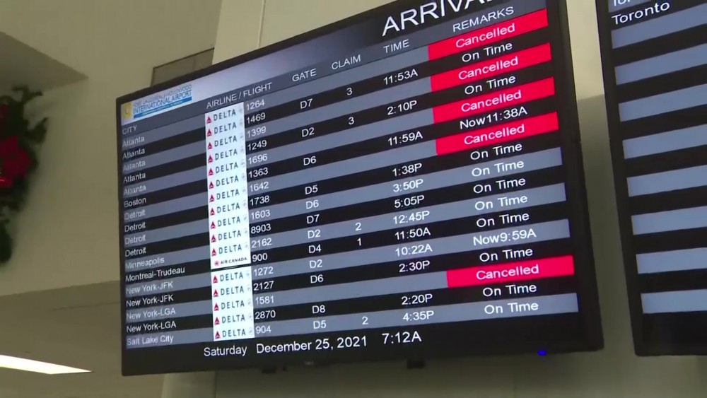The latest COVID-19 variant is upending holiday plans for tens of thousands of travelers in the US.