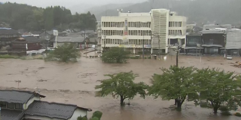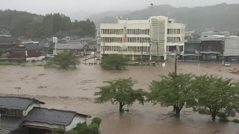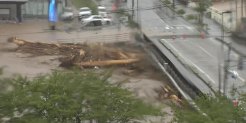 One person was killed and at least seven were missing on Saturday, officials said, as "unprecedented" rains triggered floods and landslides in Japan's quake-hit region of Ishikawa, where authorities told tens of thousands to evacuate.