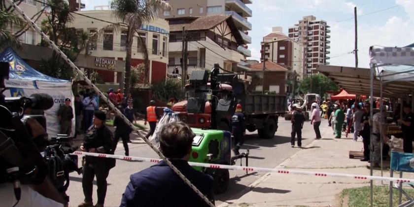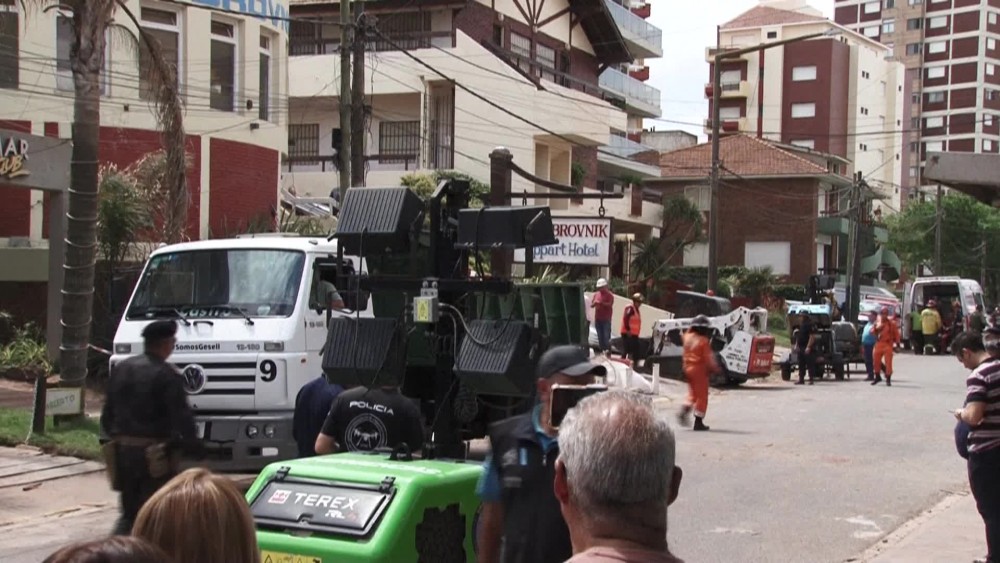 Argentine rescue workers scramble to reach several people trapped under the rubble of a ten-story hotel that collapsed in the seaside resort of Villa Gesell. A prosecutor opened an investigation to determine the cause of the collapse, but Villa Gesell's municipality said in a press release that the hotel was undergoing a renovation without the proper permits.