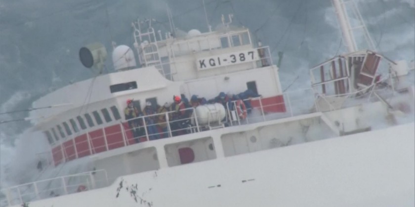 The tuna-fishing ship had engine trouble on Sunday off the Izu archipelago of Honshu, with the captain reporting Monday morning. In an operation involving patrol boats and helicopters, all the remaining crew members had been rescued by Monday.
