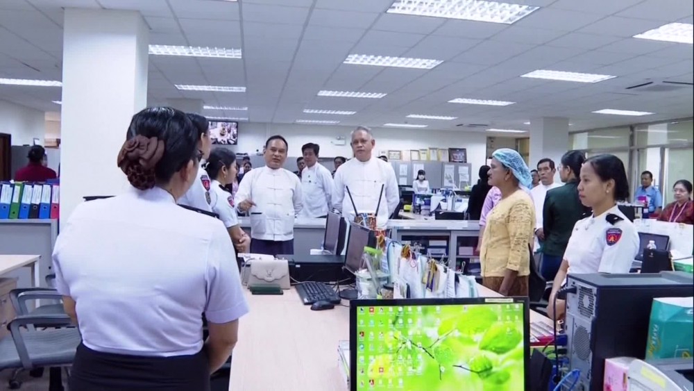 Chairman of the Myanmar Special Economic Zone Central Working Committee, Union Minister at the State Administration Council Chairman Office (2) U Aung NaingOo, visited the One Stop Service Center in Thilawa Special Economic Zone in Yangon on Saturday. He observed the work undertaken by the respective departments.