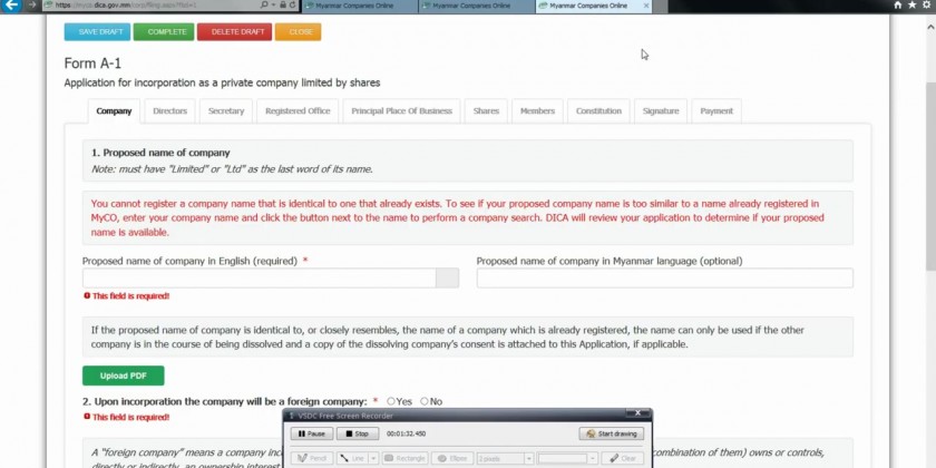 In addition, all registered companies need to file annual returns (AR) on the MyCO registry system within two months of incorporation, and at least once every year (not later than one month after the anniversary of the incorporation) under Section 97 of the Myanmar Companies Law 2017.
