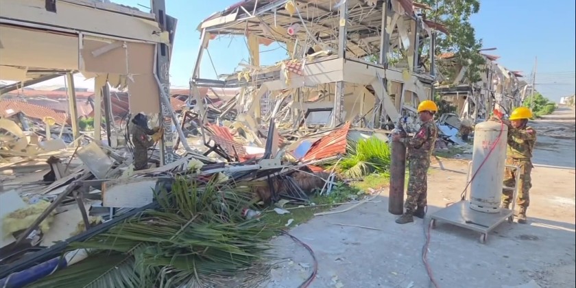 On Friday, authorities demolished five more illegal buildings in KK Park. Out of a total 635 illegal buildings, 504 have now been destroyed. Some buildings were further burned to ensure complete destruction. The government stated that fighting online scam and gambling crimes is a national duty and pledged to prevent these crimes from operating anywhere in Myanmar.