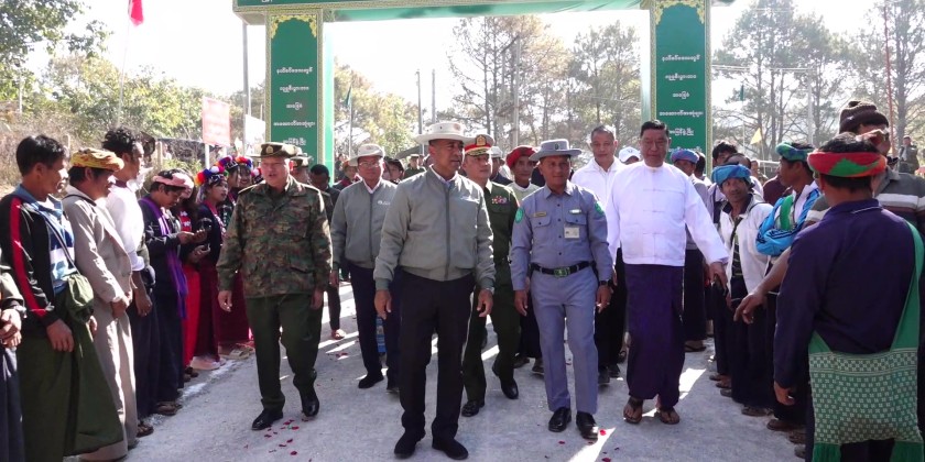 Following this, a local resident expressed words of gratitude, and the asphalt road was officially opened with a ribbon-cutting ceremony performed by Shan State Chief Minister U Aung Aung, the Commandant of the Command and General Staff College (Kalaw), State Minister for Security and Border Affairs, the State Minister for Transport, and local resident U Maung Kham.