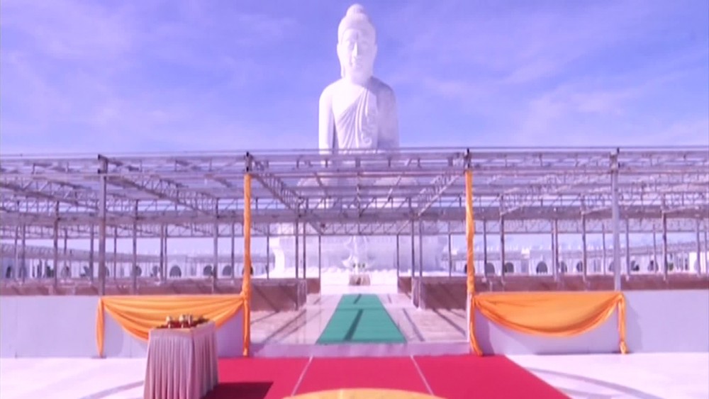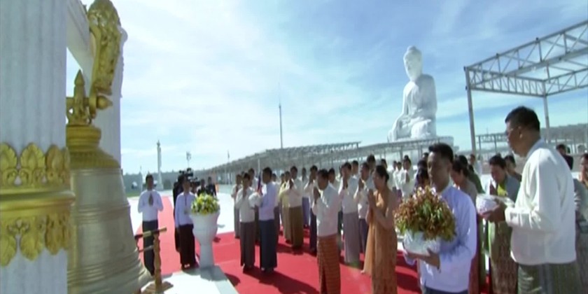 In the Buddha Park where the Maravijaya Buddha Image which will be the highest marble carving Buddha statue on the world is be erecting in Dakkhinathiri Township, Union Territory Nay Pyi Taw, the significant ceremony of establishing auspicious ground on the opposite site of the Buddha Image and the opening ceremony of Saddadhipati great bell were held in the morning on 23rd July with the attendance of the Leading donor of the Buddha Image and the Chairman of the State Administration Council Senior General Min Aung Hlaing.